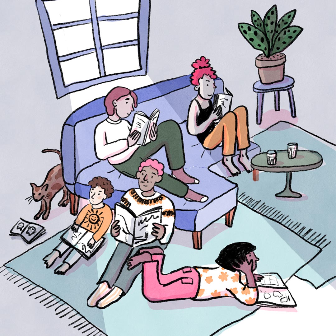 Agathe Borin (Genève 1994) est une illustratrice et autrice de bande dessinée formée aux Arts appliqués de Genève. Elle aime apporter un regard sensible sur des sujets de société et donner une touches de poésie à ses illustrations. Elle a réalisé un certain nombre de mandats de médiation scientifique notamment pour le magazine Va Savoir de l’Unil ainsi que dans le cadre de bandes dessinées numériques en collaboration avec l’Université de Fribourg. Elle propose régulièrement des ateliers de dessin et BD dans différentes institutions et réalise des illustrations pour plusieurs associations culturelles.